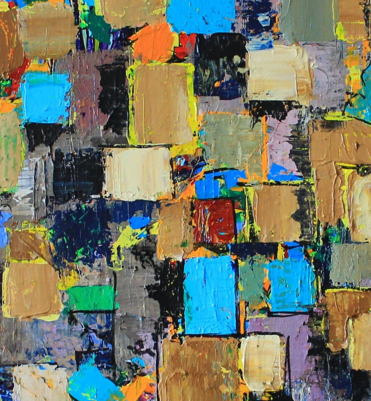 The rugged structures, the contrasting colours and textures enable the painting and drawing techniques I most enjoy. Multiple layers, textures, lines, patterns. Applying the layers with painting knives, large and fine brushes, scratching, applying, removing, re-applying, scraping. All done with energy, and both heavy and lightness of touch.